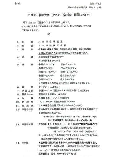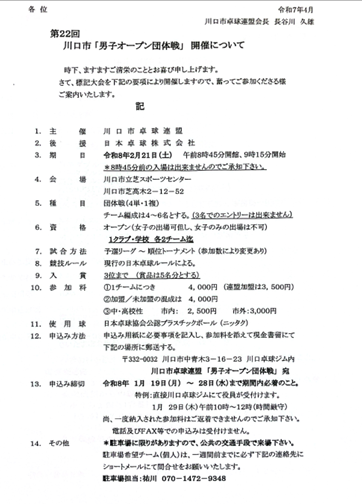 7. 参加資格 今和7年度戸田市卓球連盟登録者のみ (前期未登録者は、別紙登録用紙にて登録が必要)