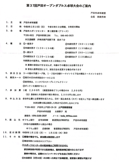 ゆうちょ銀行 店番038 普通預金1783371 戸田市卓球連盟)