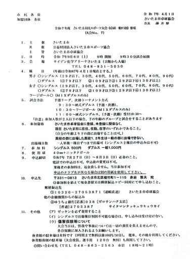 2.主 催 蕨市卓球連盟