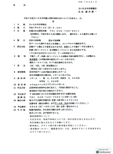 7.注 意 参加申込人数 他により中止や試合方法の変更があること